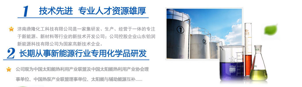 • 濟(jì)南鼎隆化工科技有限公司反哺母校 • 盡善盡美、團(tuán)結(jié)合作、用戶至上、誠(chéng)信經(jīng)營(yíng) • 擁有多名從事化學(xué)化工專業(yè)的高素質(zhì)人員,其中... • 與國(guó)內(nèi)外多家著名化學(xué)品公司保持戰(zhàn)略合作關(guān)系 • 專業(yè)研發(fā)和生產(chǎn)復(fù)配化學(xué)品和精細(xì)化學(xué)品 • 擁有雄厚的科研實(shí)力和專業(yè)銷售隊(duì)伍